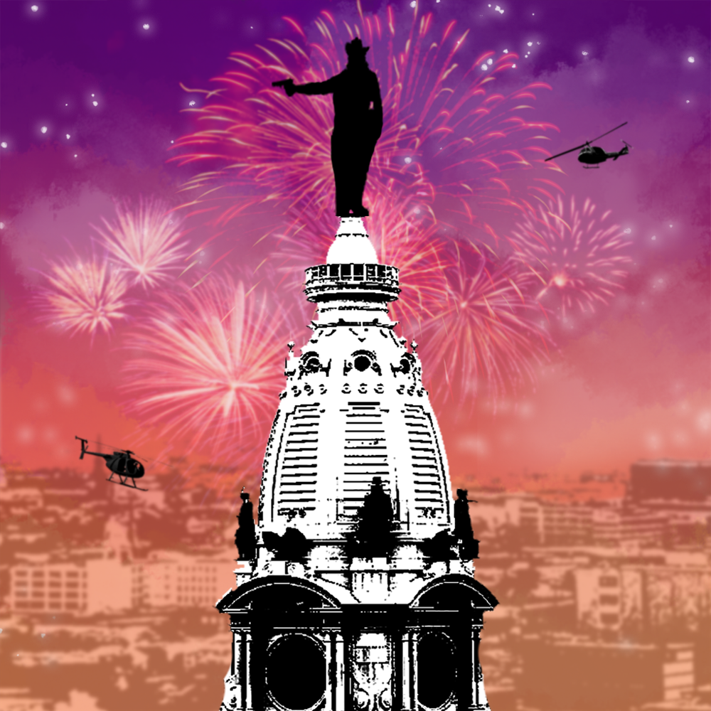 this is the cover for dommy swami's single "a most violent year", a song about growing tension and violence in the city of philadelphia.